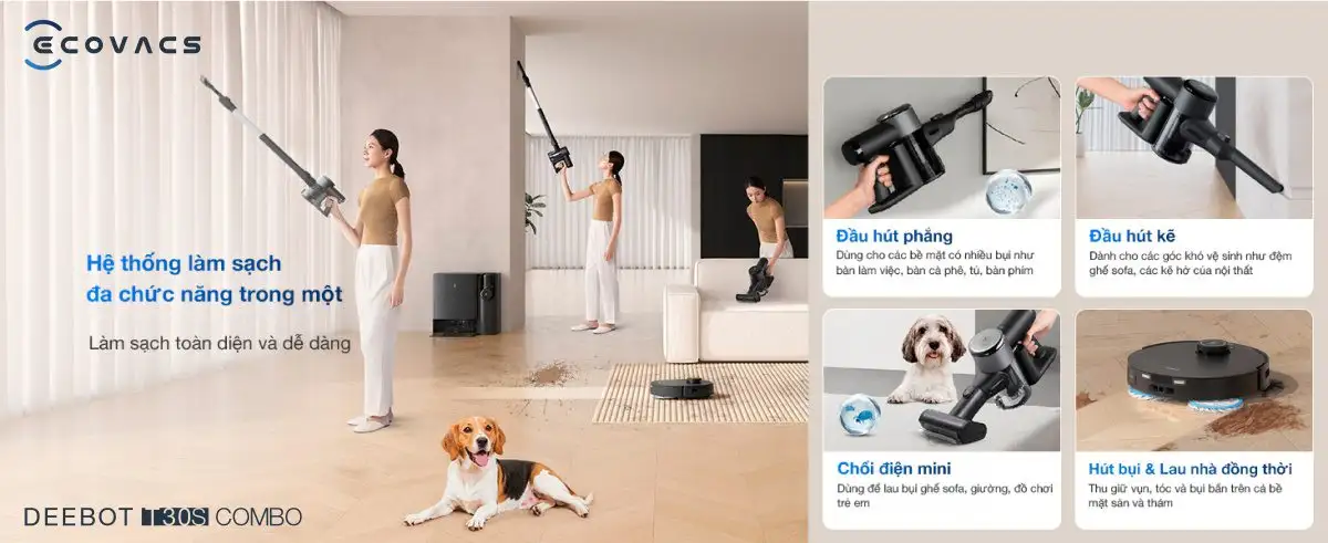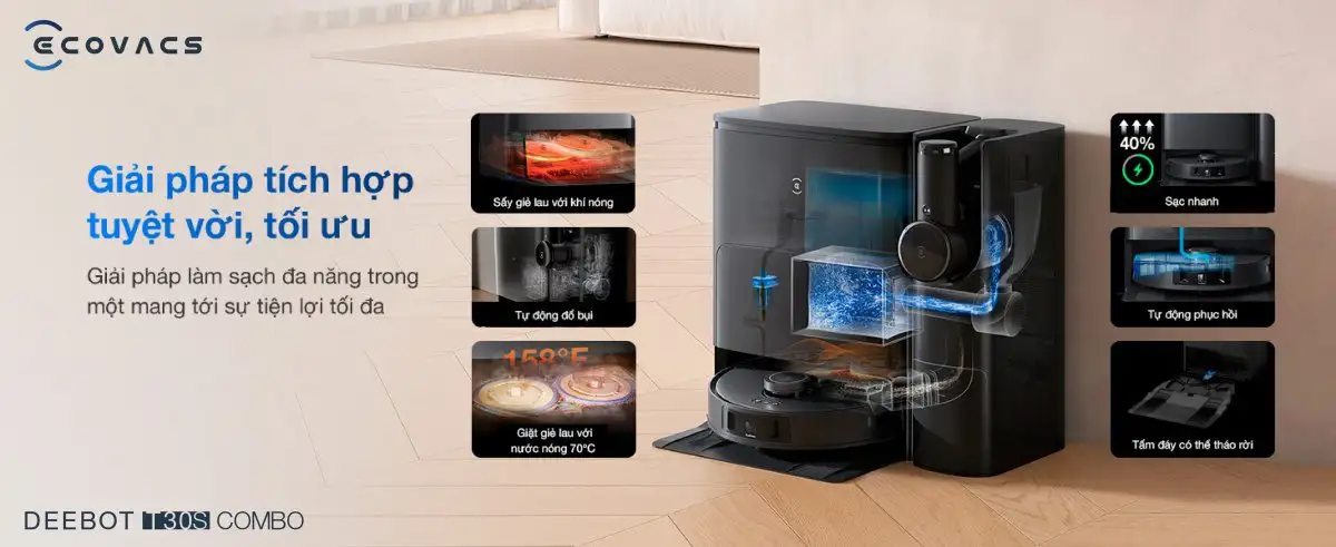 Ecovacs Deebot T30S Combo là giải pháp dọn dẹp toàn diện, phù hợp cho mọi gia đình. Với thiết kế thông minh, công nghệ tiên tiến và các tính năng tiện lợi, sản phẩm giúp bạn tiết kiệm thời gian, công sức mà vẫn đảm bảo một không gian sống luôn sạch sẽ, trong lành.