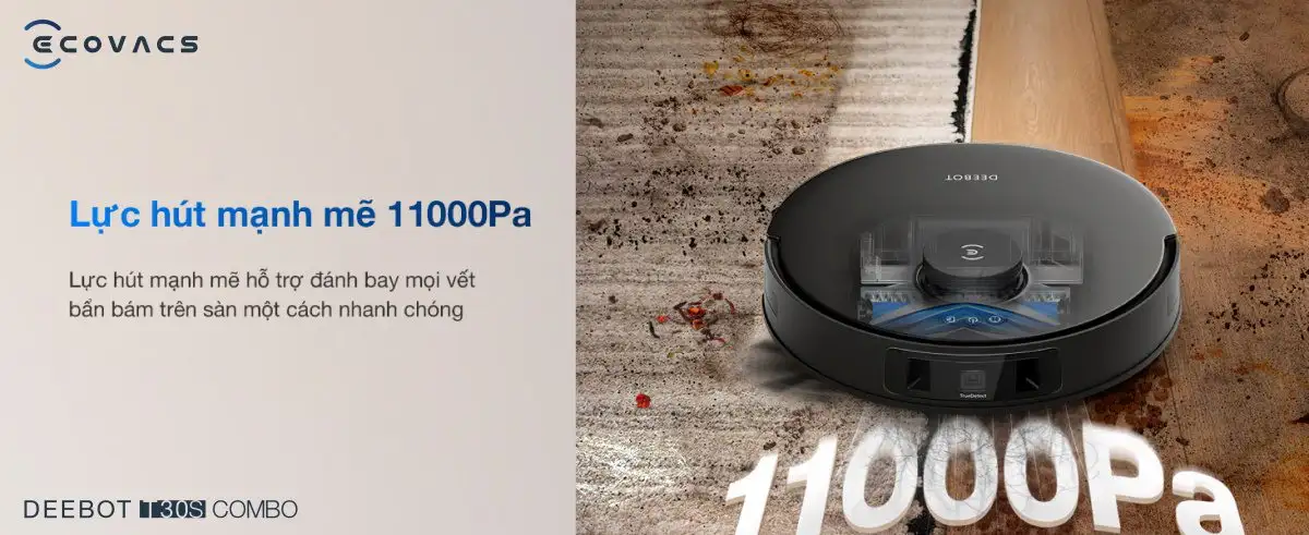 Sức mạnh làm sạch của Deebot T30S Combo nằm ở lực hút lên đến 11.000Pa, nhờ động cơ tốc độ cao và thiết kế ống dẫn thẳng. Thiết bị không chỉ hút sạch các hạt bụi lớn mà còn làm sạch sâu thảm và sàn cứng, mang lại không gian sống sạch sẽ tối ưu.