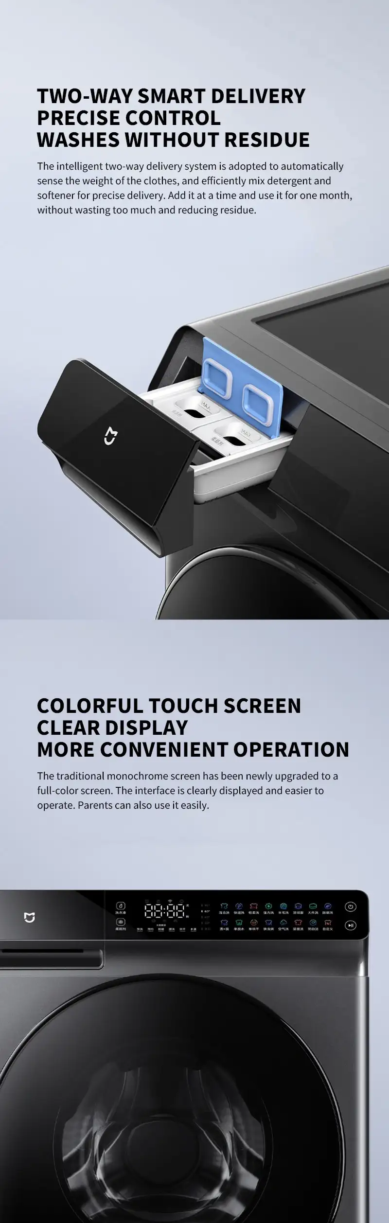 Xiaomi MJ203 cung cấp nhiều chương trình giặt thông minh, tùy chỉnh cho các loại vải và nhu cầu giặt khác nhau như giặt nhanh, giặt nhẹ, giặt đồ delicates, v.v. Những chương trình này không chỉ giúp bảo vệ quần áo mà còn tiết kiệm thời gian cho người dùng. Với khả năng điều chỉnh linh hoạt, máy giặt sấy Xiaomi MJ203 đáp ứng mọi nhu cầu giặt giũ của gia đình.
